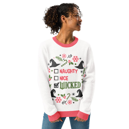 Naughty, Nice, Wicked Ugly Christmas Sweater Pink