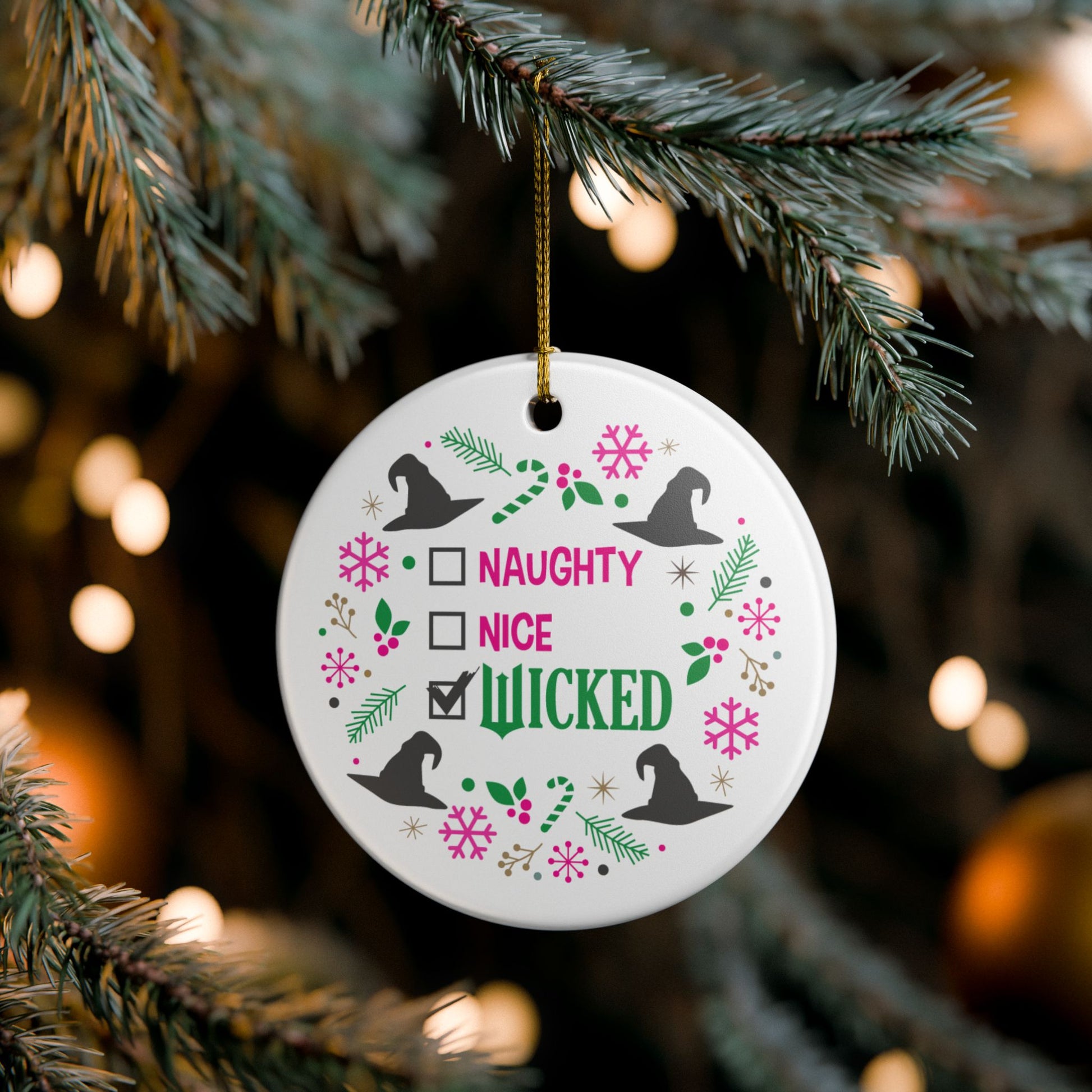 Deck your tree with a little attitude this holiday season! This Wicked-inspired ornament takes the classic “Naughty or Nice” list and adds a magical twist — with checkboxes for Naughty, Nice, and Wicked (and of course, Wicked is the only one checked). Perfect for fans of the Wicked movie who like their Christmas decor with a dash of sass and sparkle. Whether it’s hanging on your tree or gifted to a fellow witchy friend, this ornament is guaranteed to bring some Emerald City flair to your festivities!